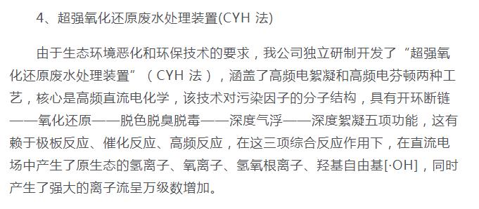 超強氧化還原廢水處理裝置(CYH法)處理各種有機廢水、各種重金屬廢水
