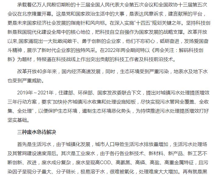 今日頭條刊登:喜迎二十大|超強氧化還原(CYH法)技術,使污水處理再無后顧之憂