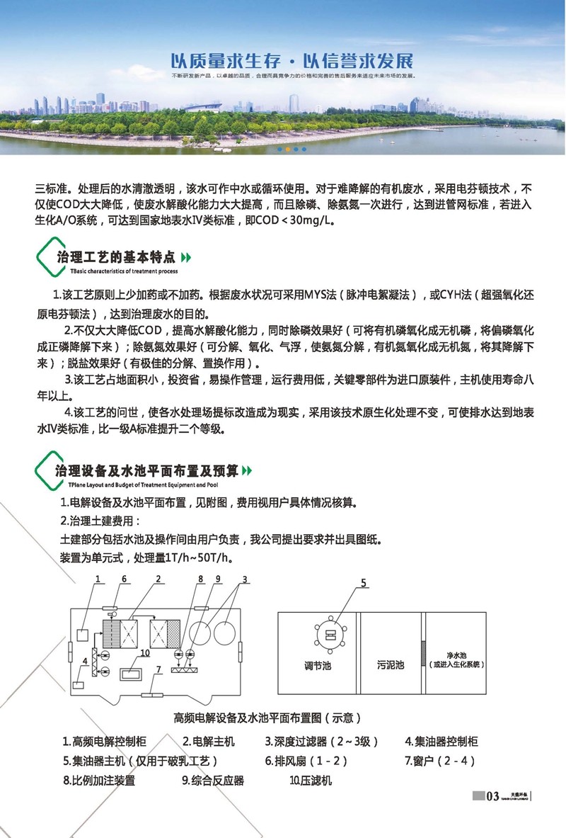 公司始建于1986年,以處理各種有機廢水、各種重金屬廢水為主,獨立研制開發多種節能環保產品,已獲多項國家發明及新型專利一種電化學廢水處理裝置 ZL 2013 2 0210949.5。公司堅持“以質量求生存、以信譽求發展、以市場為導向、以技術為依托”的宗旨。